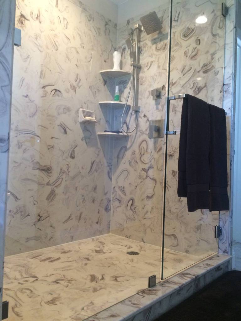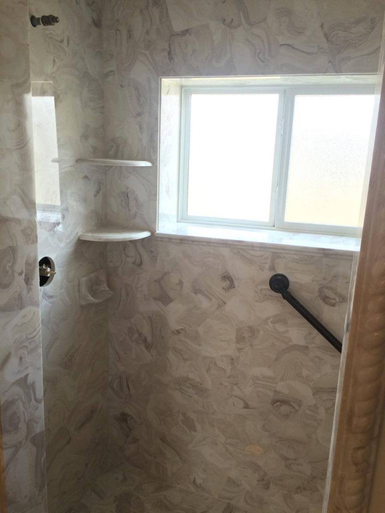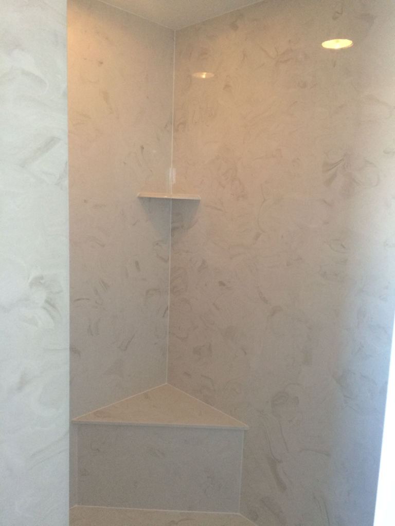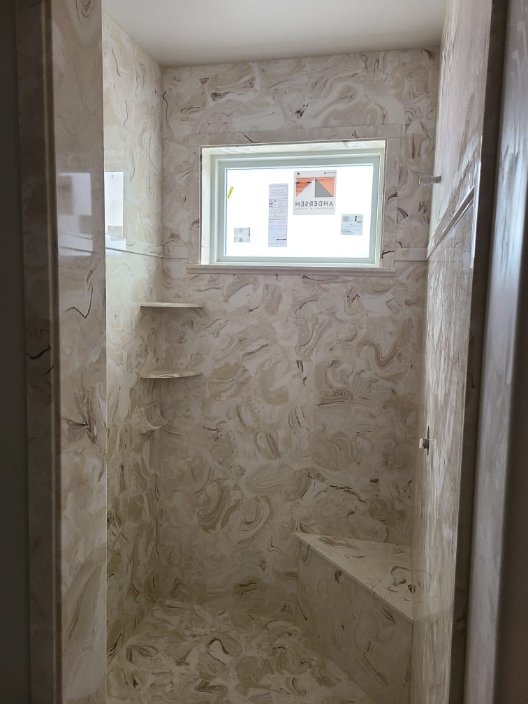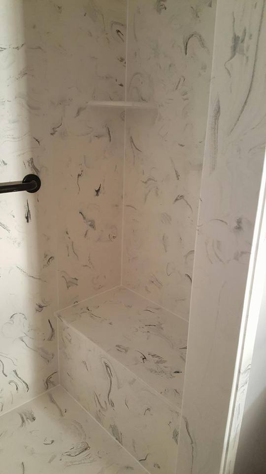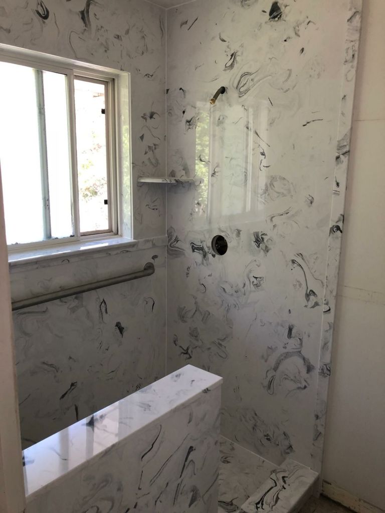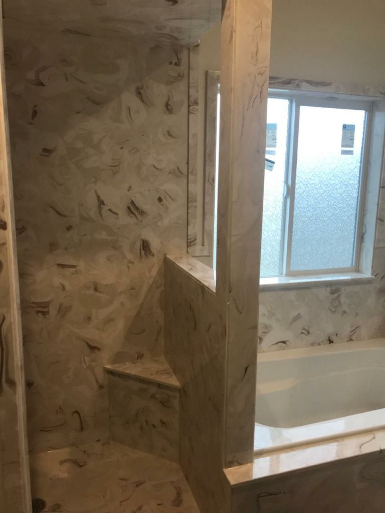 View a gallery of completed jobs including showers, tub surrounds, solid surface countertops, and window sills