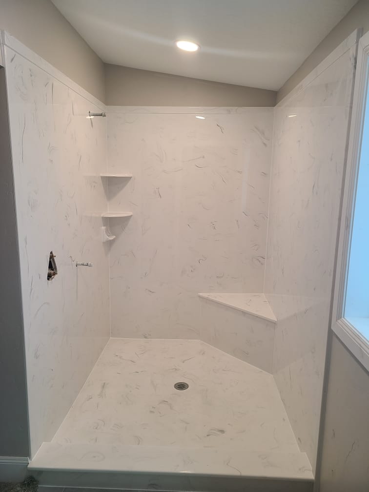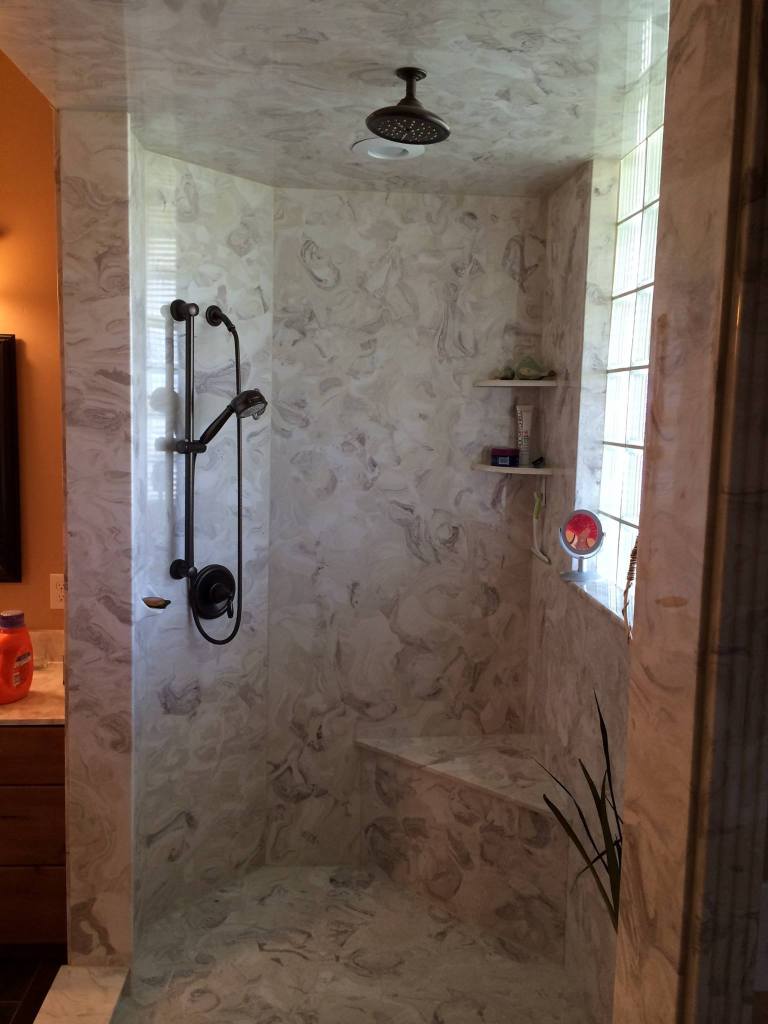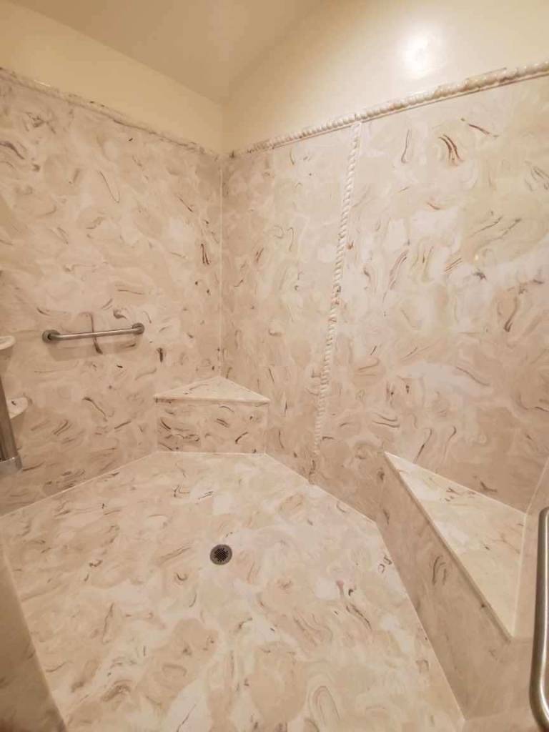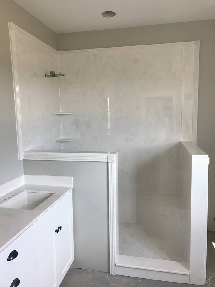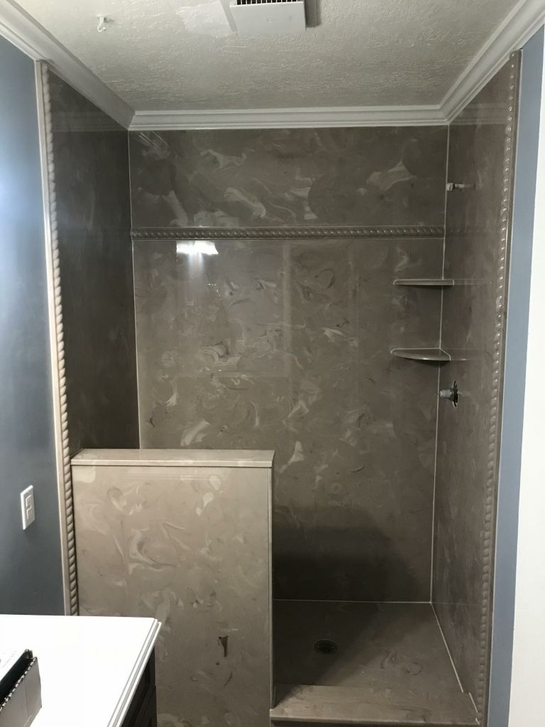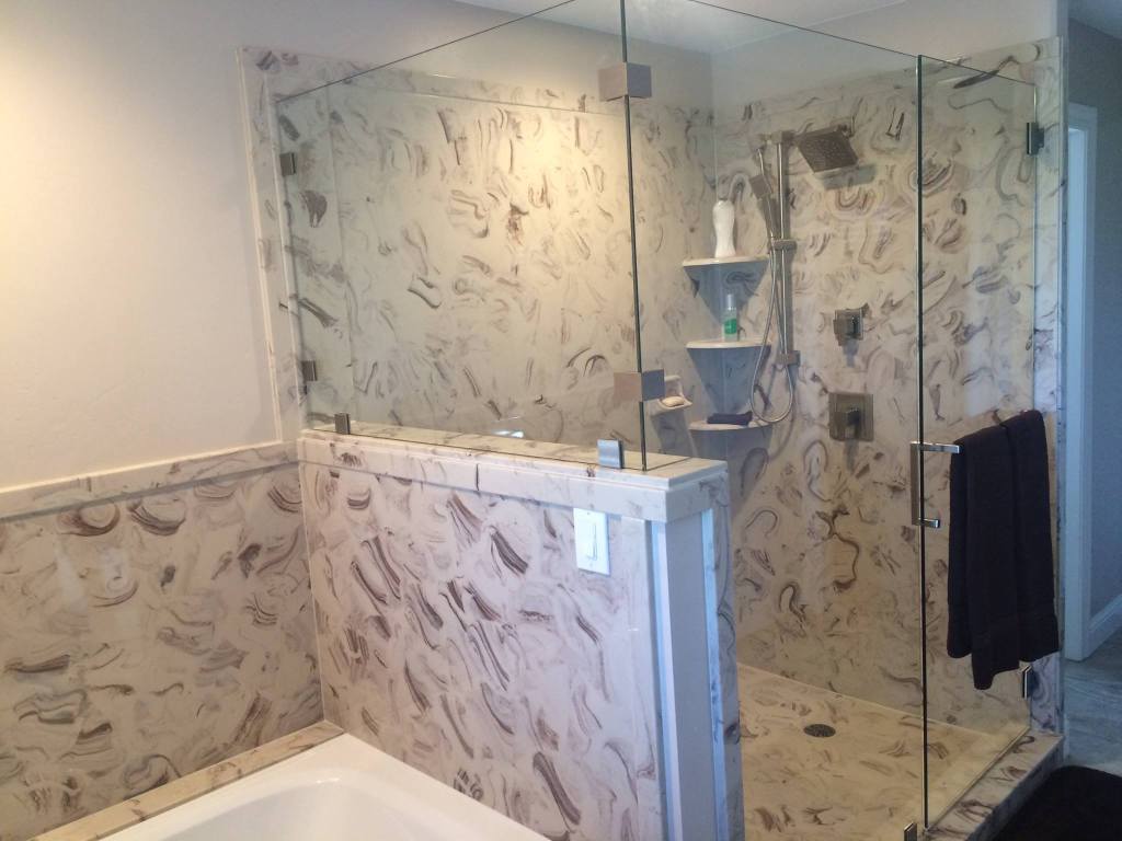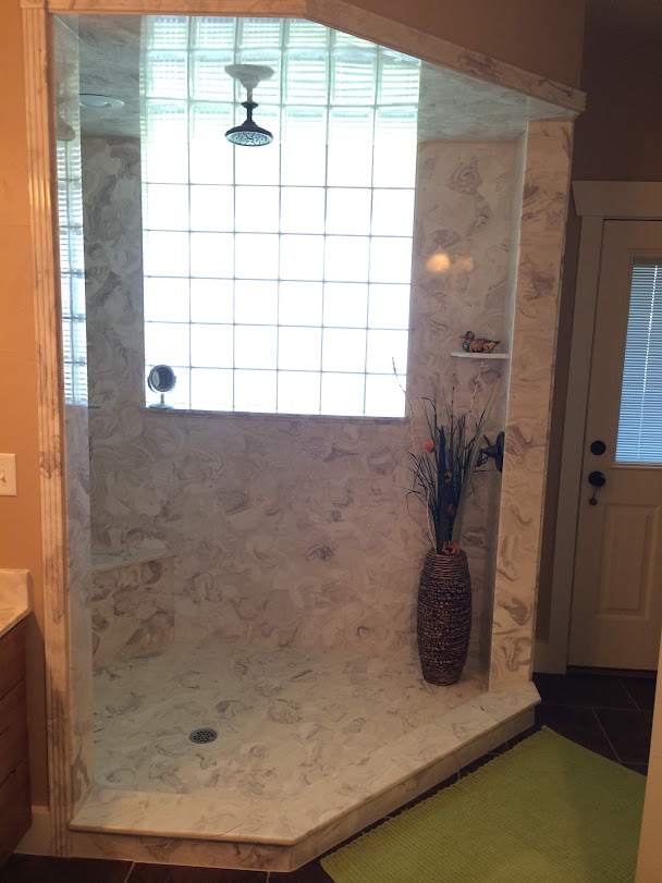 View a gallery of completed jobs including showers, tub surrounds, solid surface countertops, and window sills