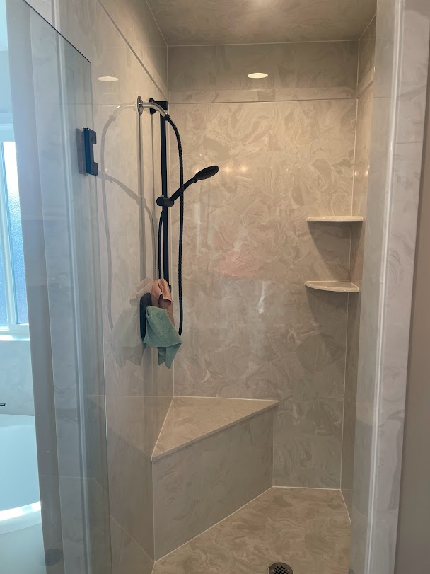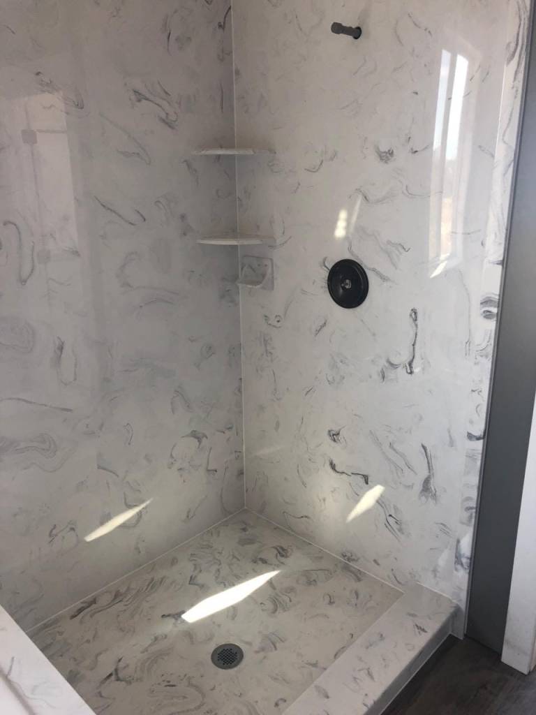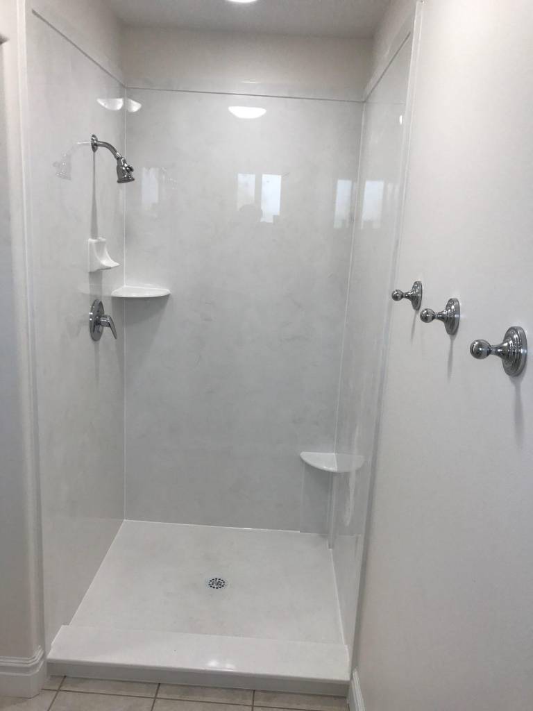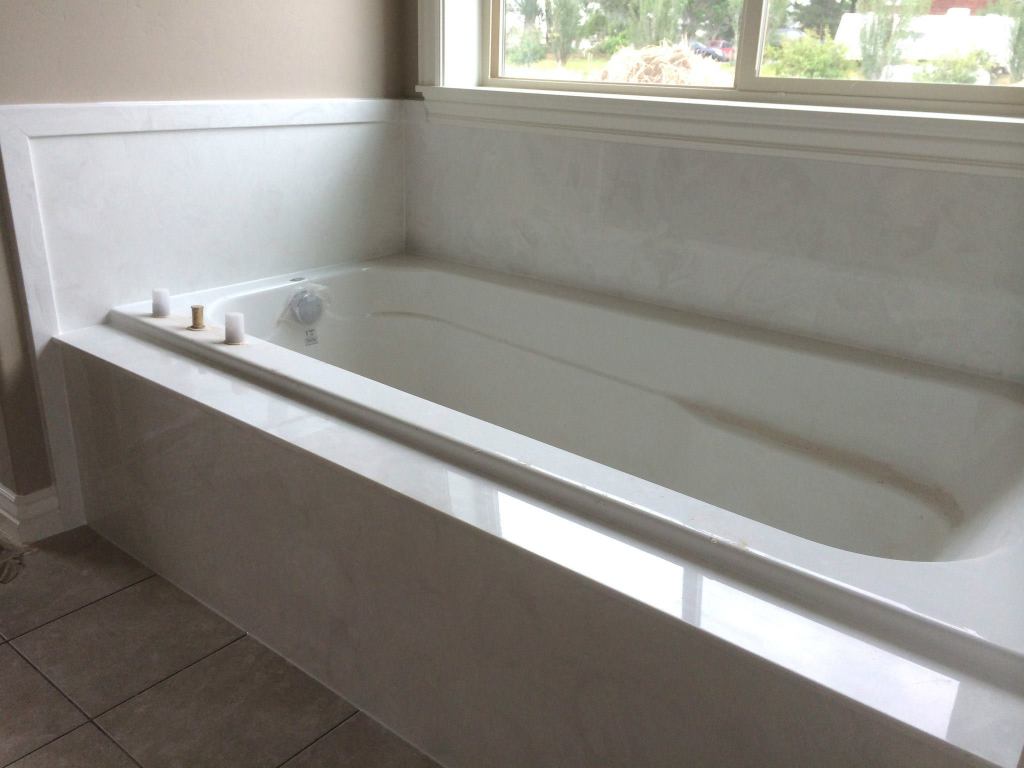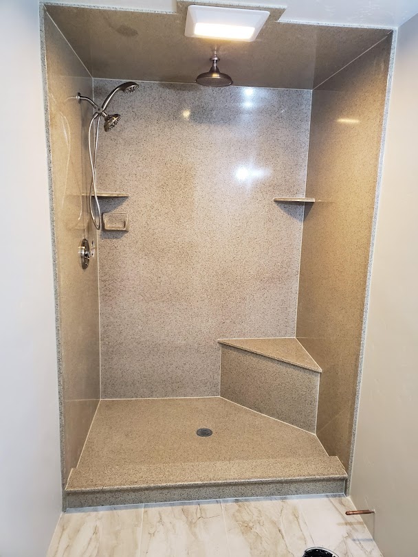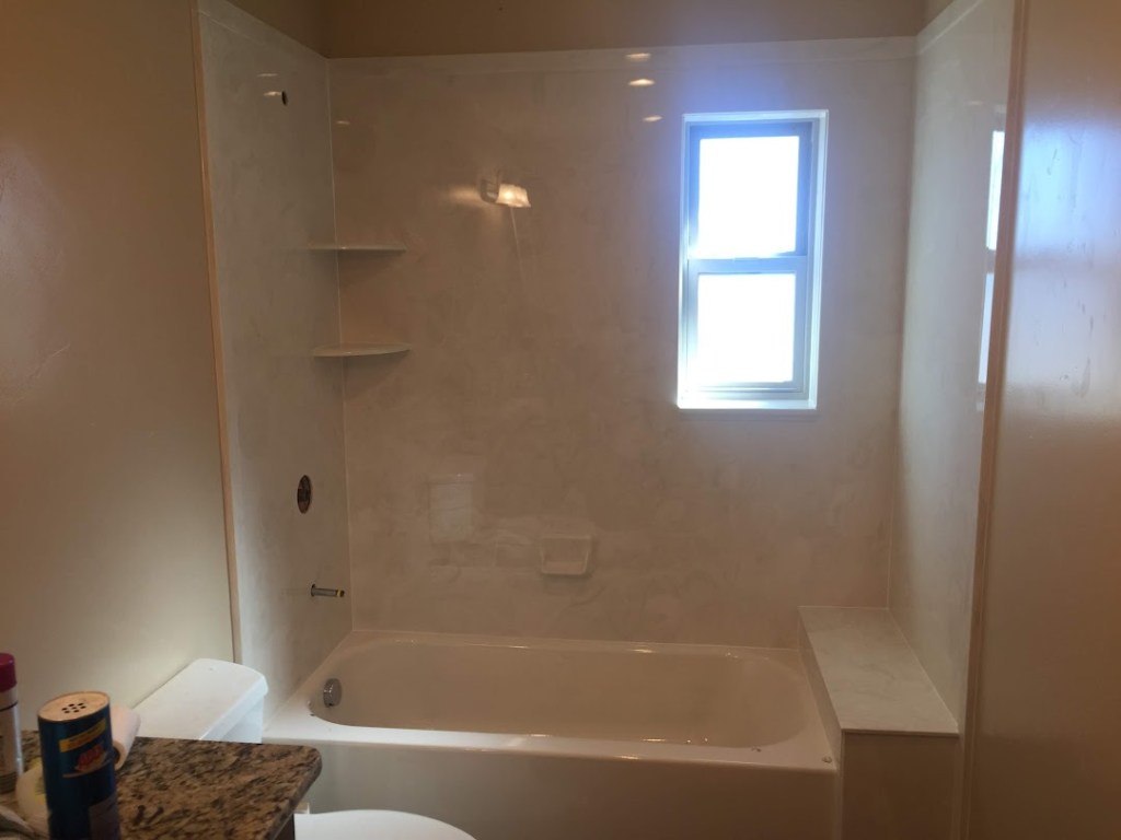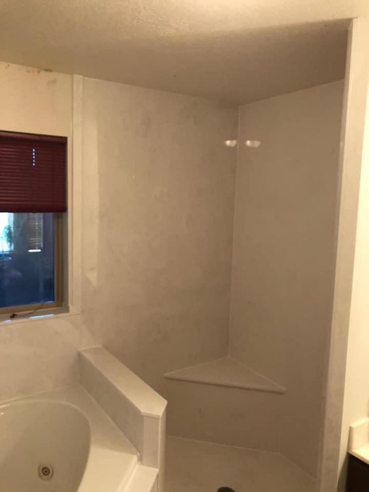 View a gallery of completed jobs including showers, tub surrounds, solid surface countertops, and window sills