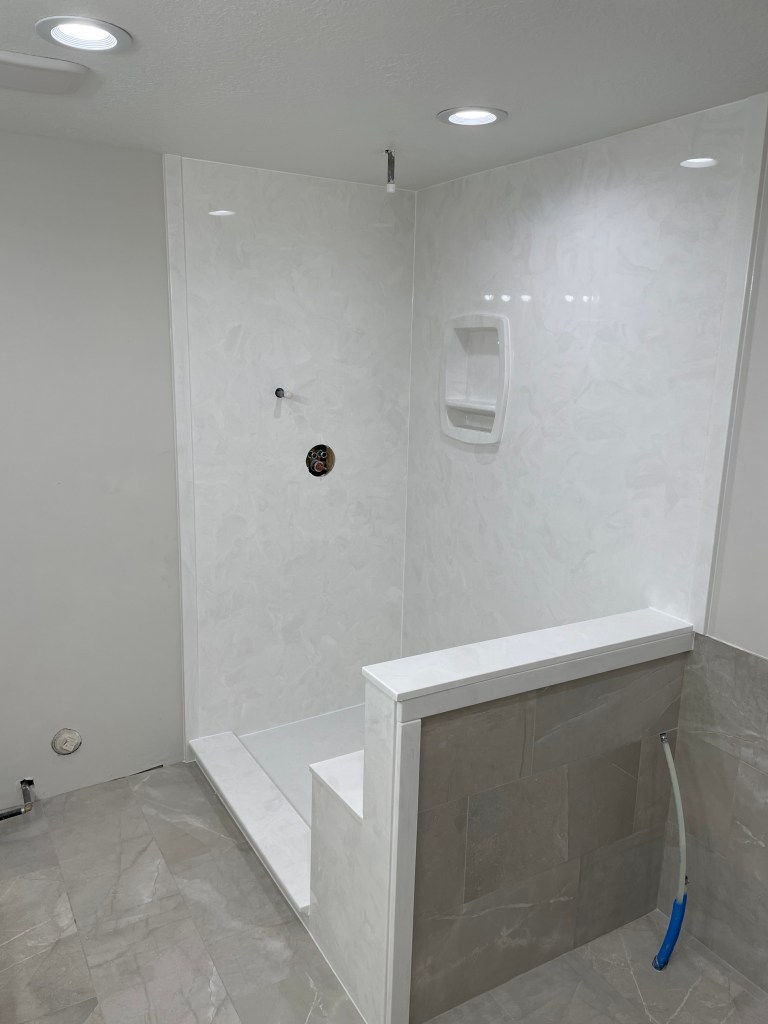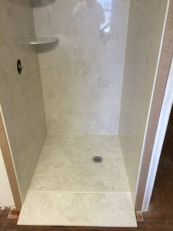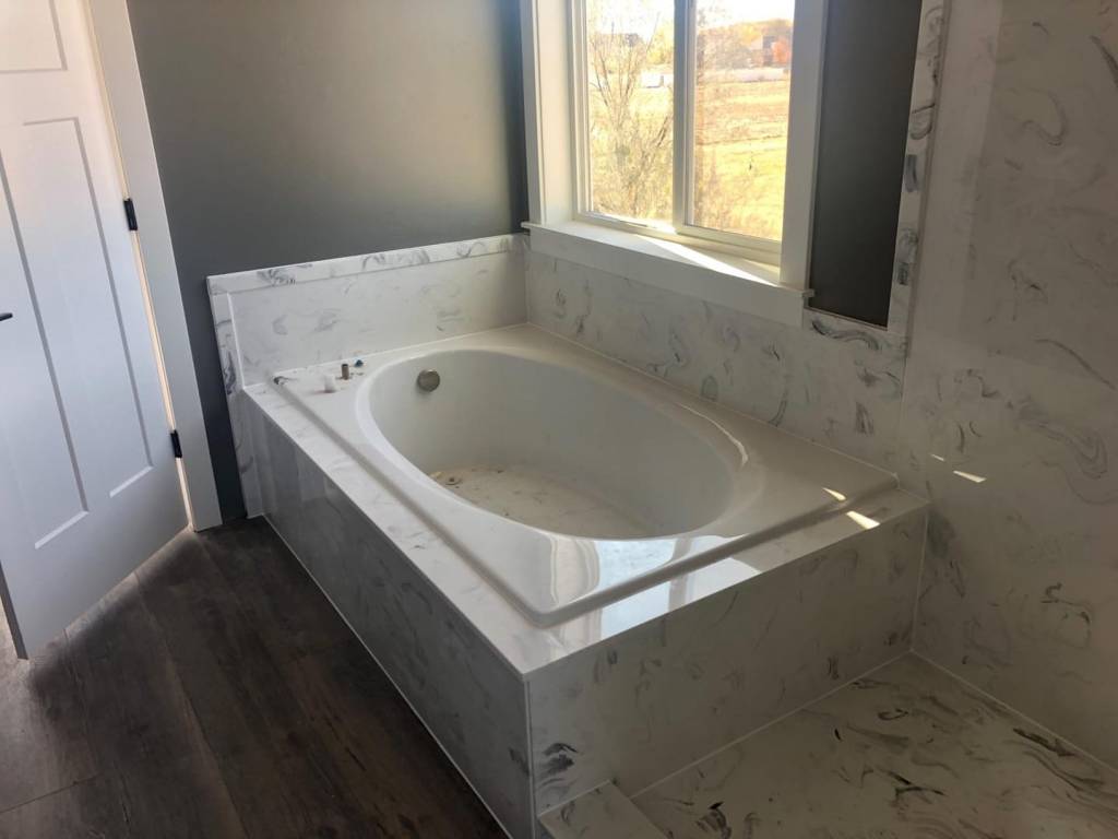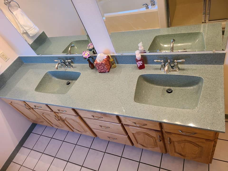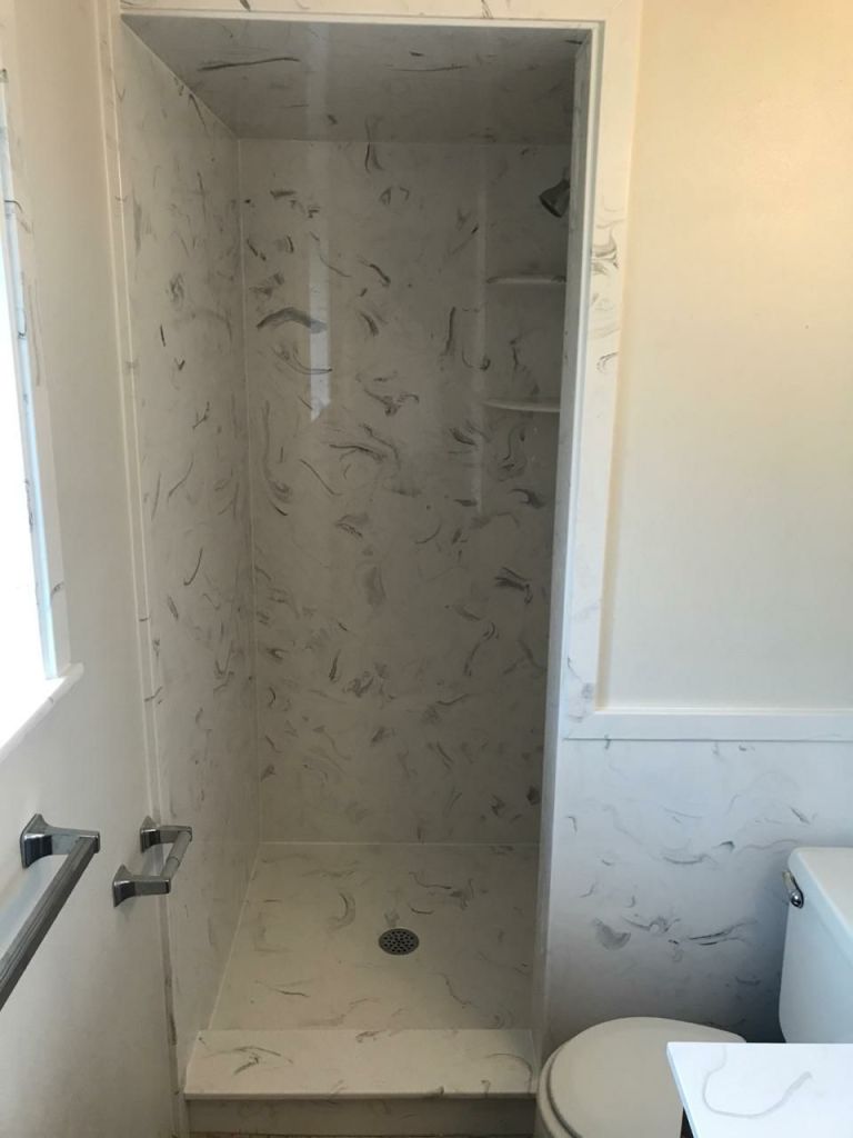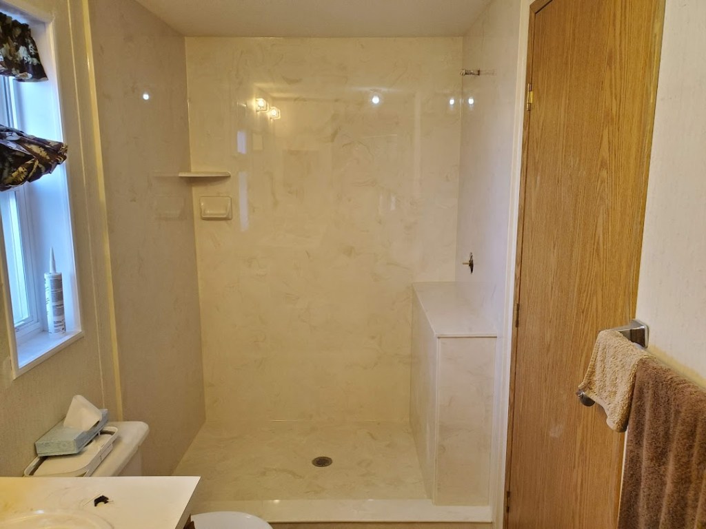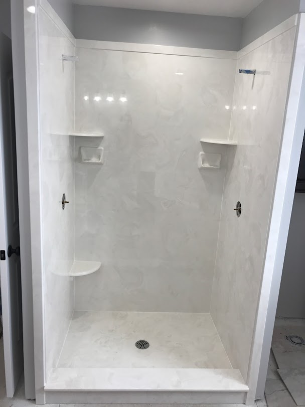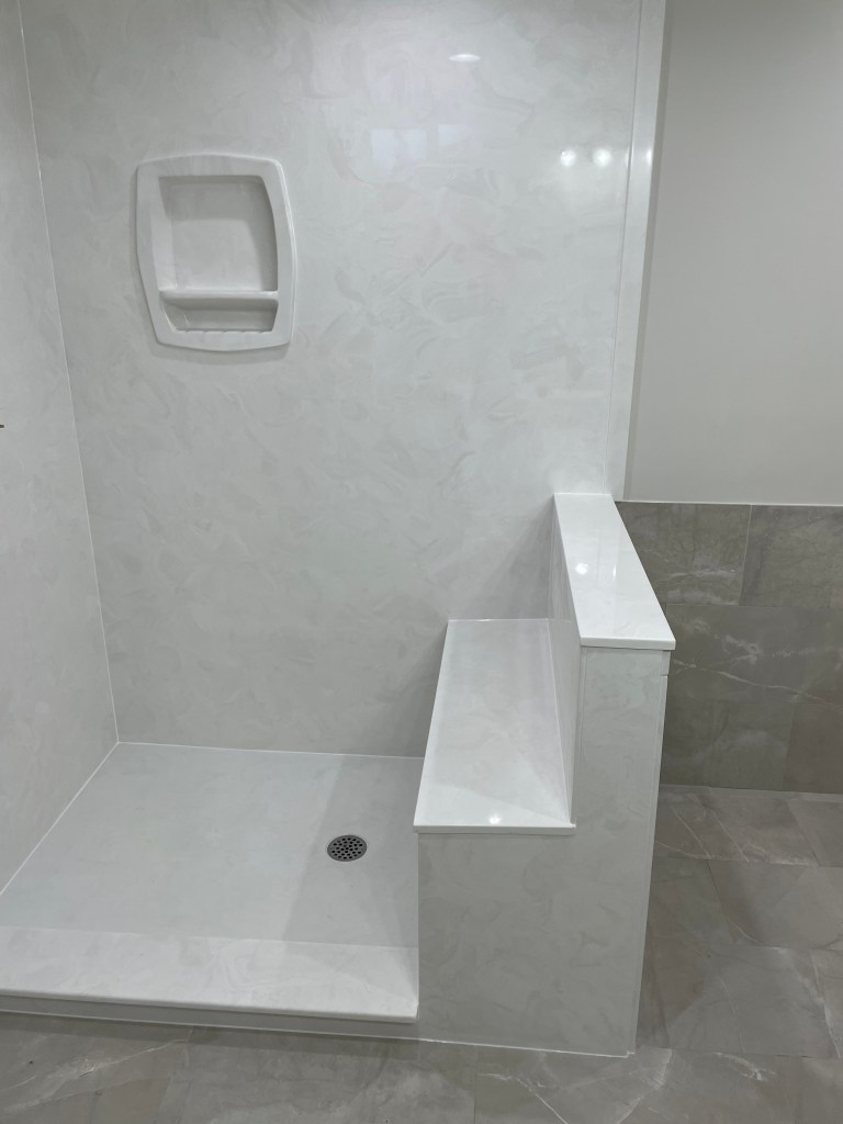 View a gallery of completed jobs including showers, tub surrounds, solid surface countertops, and window sills