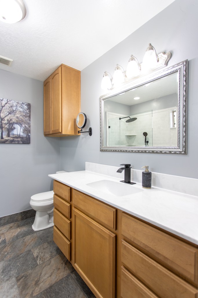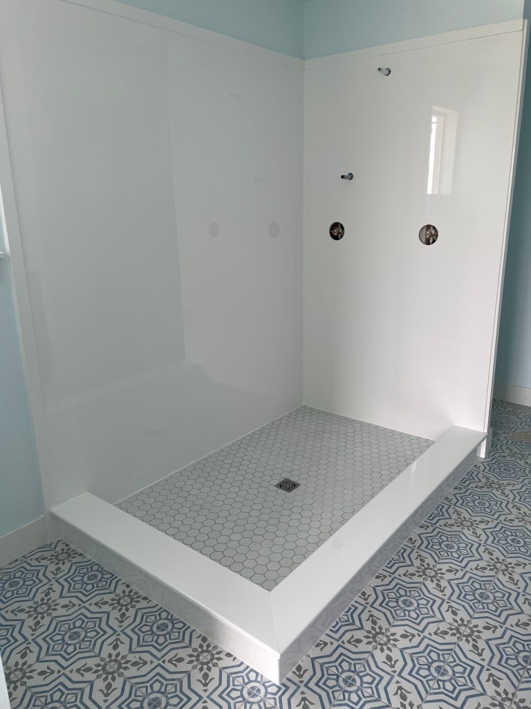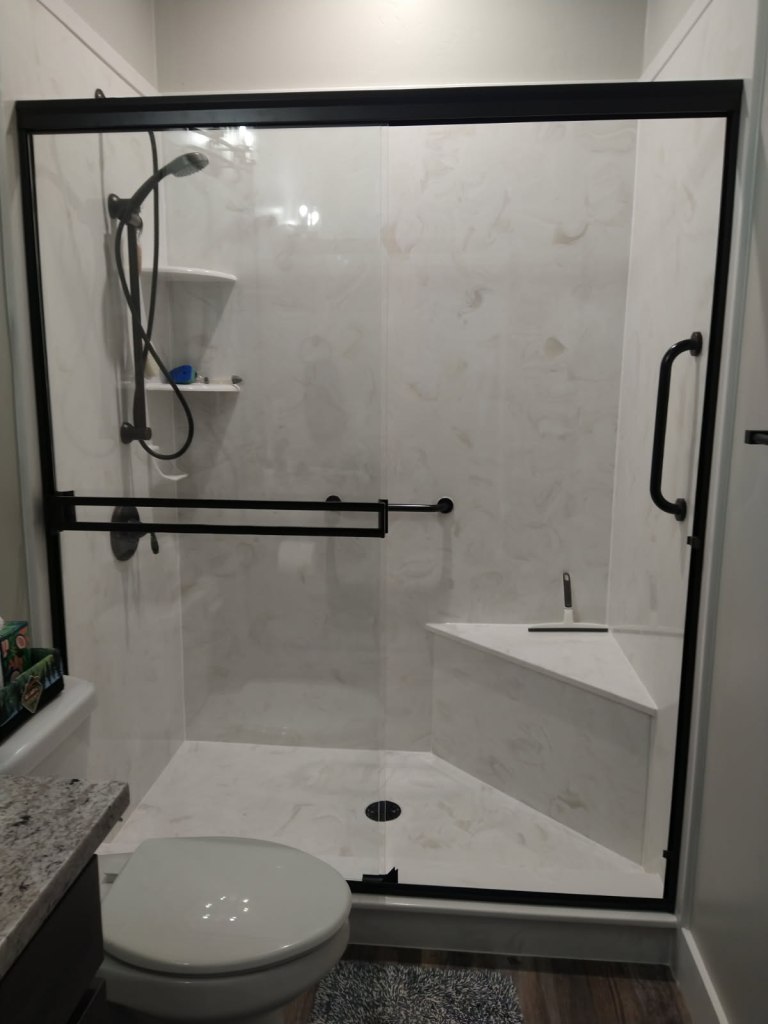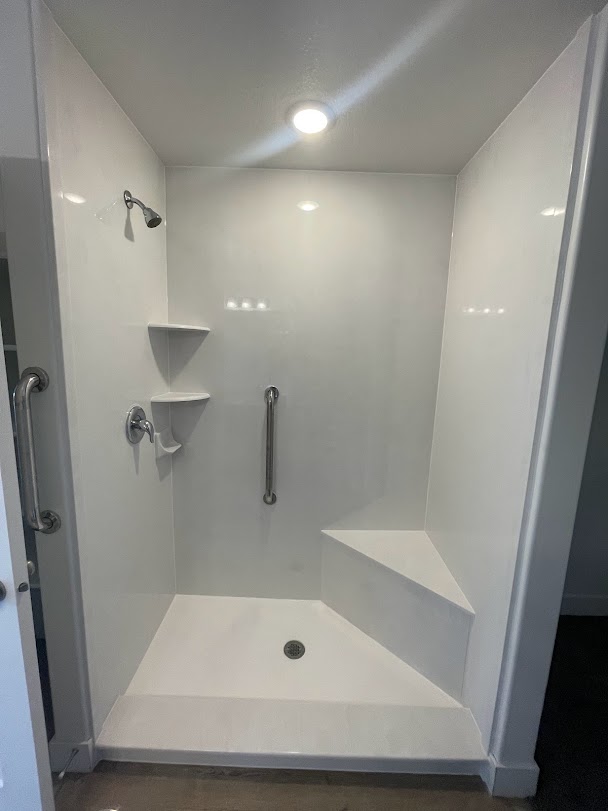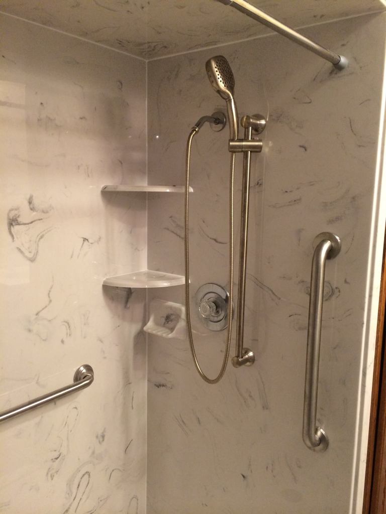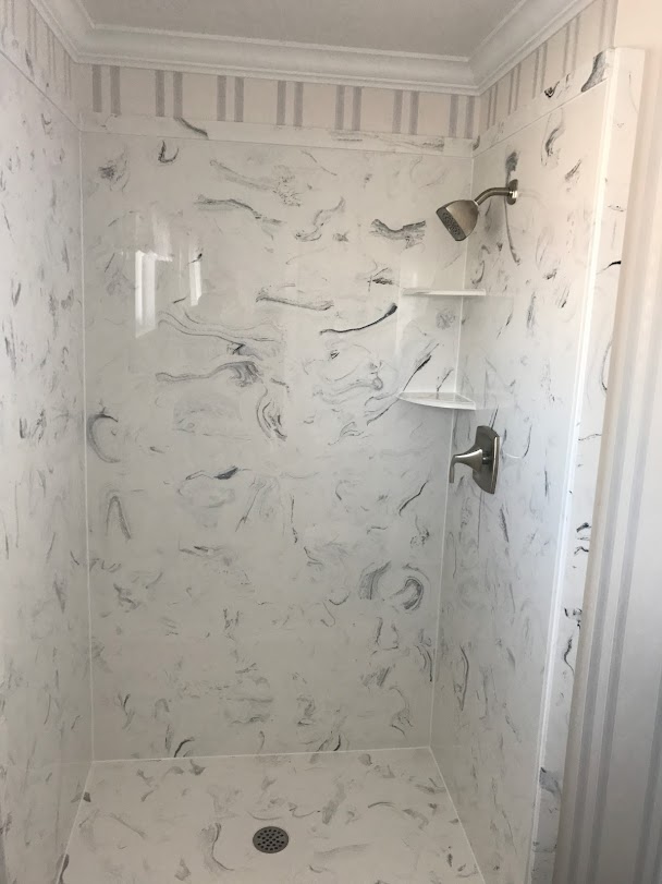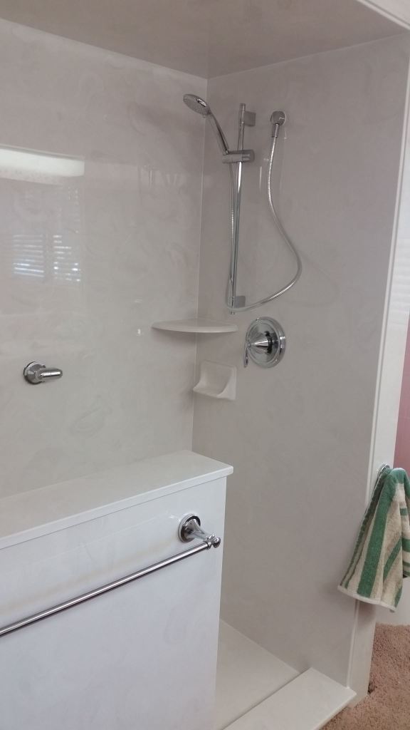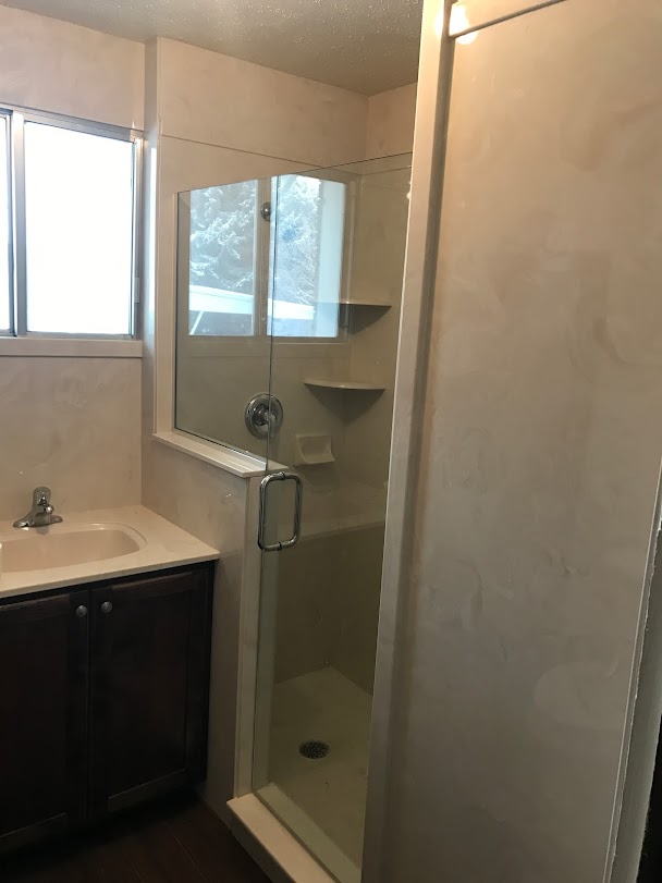 View a gallery of completed jobs including showers, tub surrounds, solid surface countertops, and window sills